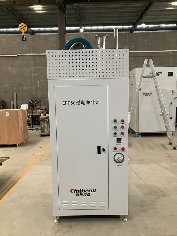 The Chitherm EPF50-09 Waste Gas VOCs Purifier Furnace is a semi-automatic industrial furnace designed for efficient treatment of volatile organic compounds (VOCs) in waste gases. With a processing capacity of 20Nm³/h and operating temperature of 850°C, this electric-powered furnace delivers reliable performance for industrial applications.